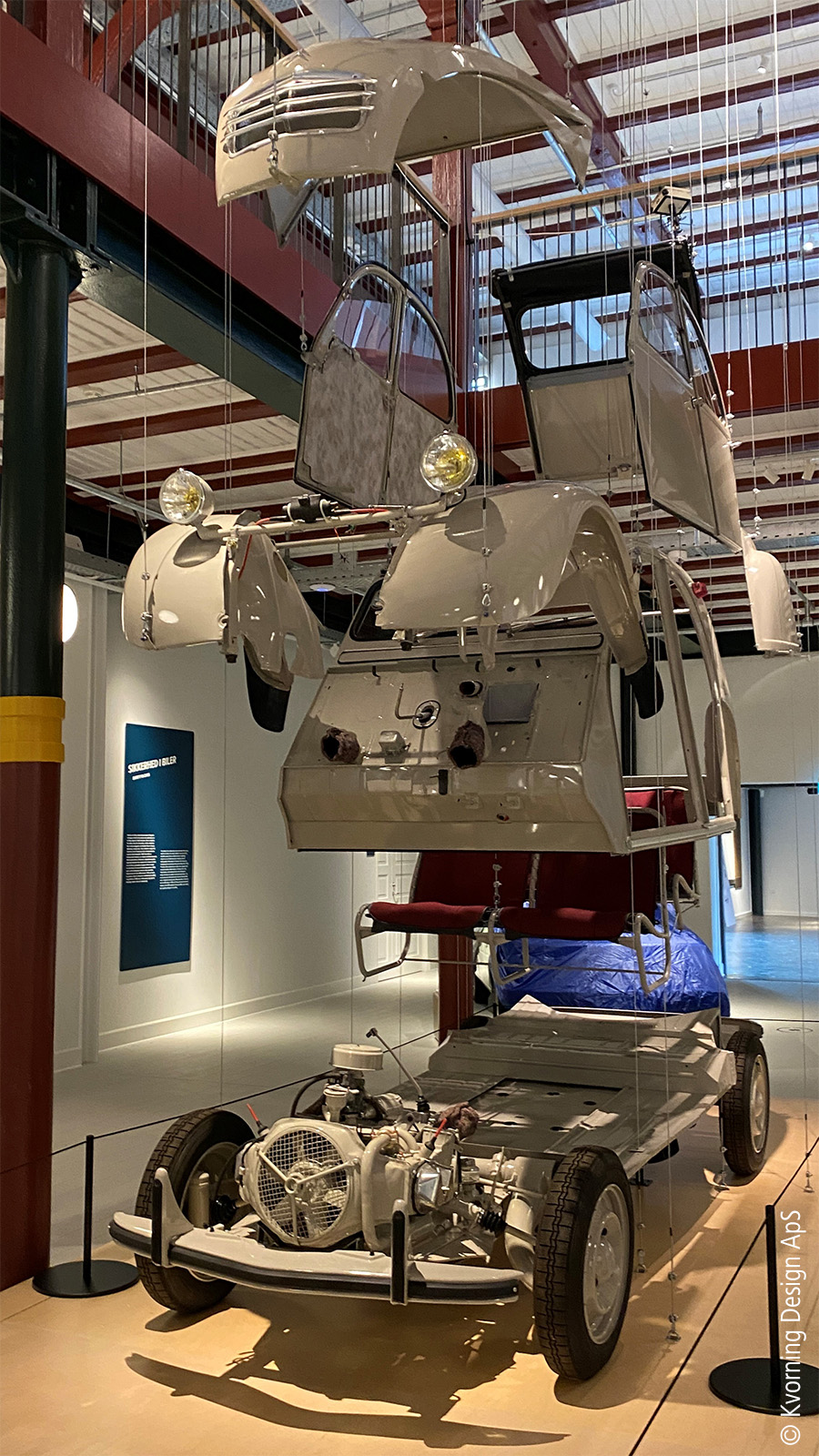 Kvorning Design overdrog opgaven med at realisere 2CV-installationen – én af de mange wow-effekter i Classic Car House – til All Stage Production ApS, der har stor erfaring med automation til oplevelsesindustrien.