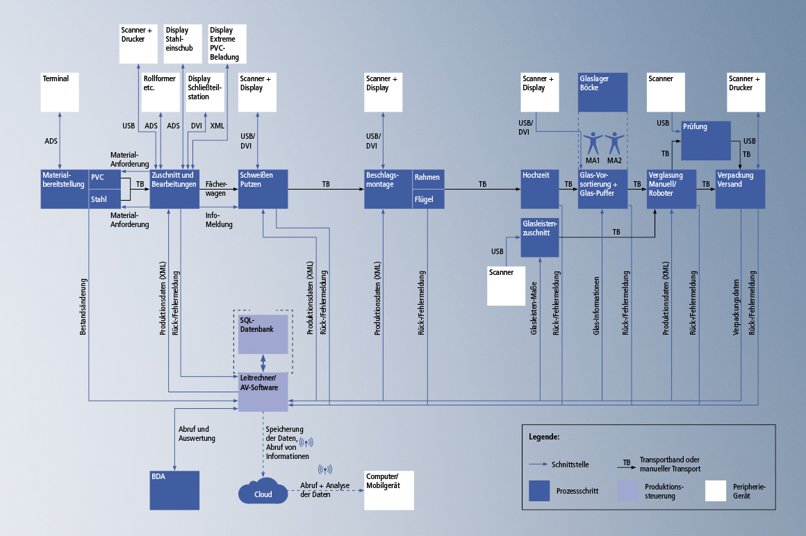 Für die Prozessautomatisierung im Fenster-, Türen- und Fassadenbau gelten höchste Anforderungen – sowohl hinsichtlich der Verarbeitung unterschiedlicher Werkstoffe zu komplexen Endprodukten als auch in Bezug auf die Individualisierung der Fertigungsprozesse. Optimierungspotenzial versprechen Industrie-4.0-Konzepte: Durch eine vernetzte, intelligente Produktion auf Basis durchgängiger horizontaler und vertikaler Kommunikation werden Flexibilität, Effizienz und Nachhaltigkeit, aber auch die Wettbewerbsfähigkeit verbessert. Die PC-basierte Steuerung von Beckhoff mit offenen Schnittstellen in Hard- und Software und durchgängiger Kommunikation, vom Sensor bis in die Cloud, bietet alle Voraussetzungen für die vernetzte „Smart Factory“.