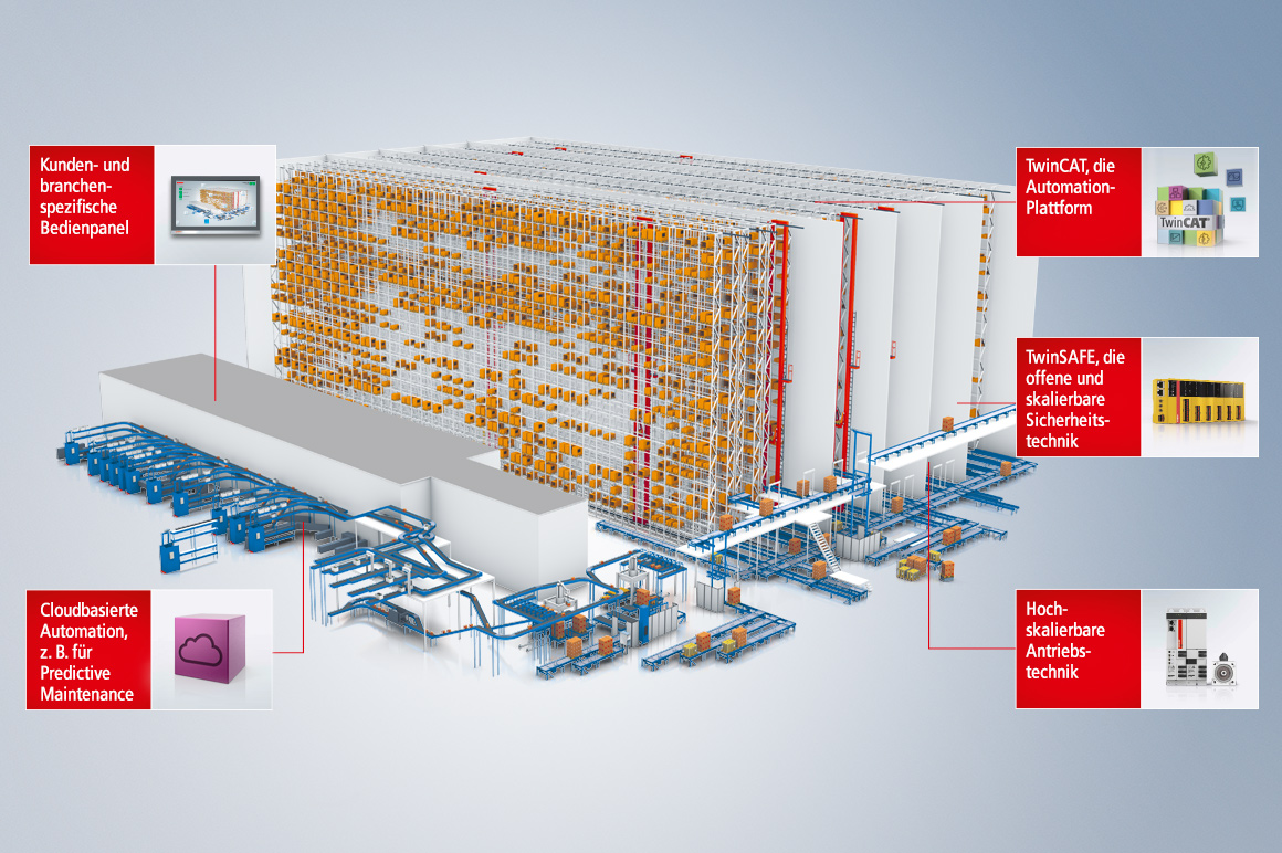 Moderne Lager- und Distributionssysteme müssen schnelle Verfügbarkeit bei maximaler Individualisierung sowie hohe Effizienz und Zuverlässigkeit gewährleisten. Mit unserer performanten PC- und EtherCAT-basierten Steuerungstechnik lassen diese Anforderungen optimal erfüllen und zugleich Wettbewerbsvorteile realisieren.