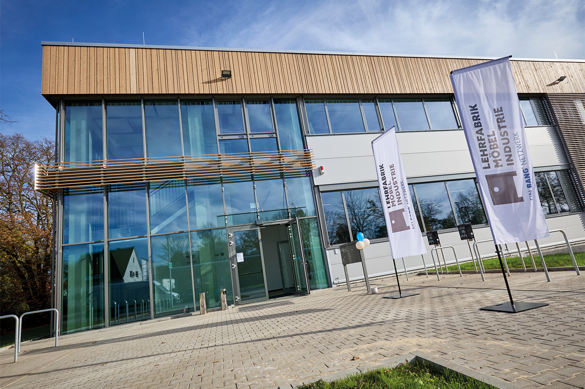 Die Lehrfabrik Möbelindustrie ist ein modernes Bildungszentrum und mit einer vollständigen Produktionsstraße zur Möbelfertigung sowie Laboren zur Vermittlung von Grundlagen ausgestattet.