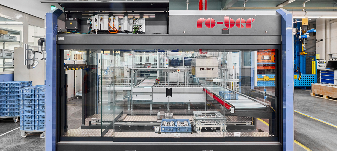 Floor space is one of the most valuable resources in intralogistics – usually, every single square centimeter counts, and this was certainly true for Bürkert. The supplier of measuring, control, and regulation systems for liquids and gases is on a steady growth trajectory, which means it has to achieve constant improvements in its internal material handling and logistics. Bürkert does not sell standard products but instead focuses on valve designs and materials precisely tailored to each customer. As a result, the company’s product range comprises 140,000 sellable items. Frank Landgraf – who is responsible for all logistics processes at Bürkert – described the starting point: “Getting to grips with this kind of diversity in production and intralogistics is a real challenge. While automation used to focus on assembly, today the greatest potential lies in intralogistics.” He also believes that it is important to consider ergonomics; “Manually handling heavy crates of 20 kg or more isn’t the way we do things now – and given the labor shortage we’re experiencing, it isn’t a method we can support anymore.” The process of feeding material into an automated small parts warehouse with around 27,000 bays was creating a bottleneck at the Criesbach site. The company was looking for an automated solution, but the on-site conditions left little room to maneuver. The system had to fit into an existing niche that would have been too small for conventional robot cells and bulky control cabinets.