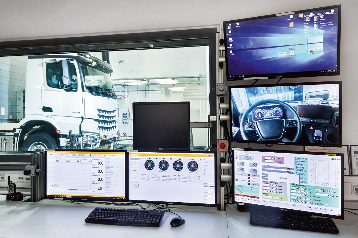 The remote control allows important vehicle functions such as the driving mode, gear selection, cruise control, retarder, and accelerator pedal position to be remotely controlled from the control station via the test bench automation system. “This enables commercial vehicle manufacturers to carry out many complex measurements – of the kind that were previously only possible on the road – under realistic driving conditions and with a high degree of repeatability on the test bench,” says Dr. Tobias Kolb, who works in automotive test bench development at Softing Engineering & Solutions GmbH, highlighting the advantage of remote control.