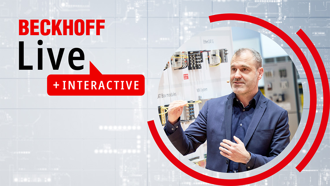 Beckhoff Live + Interactive is our way of allowing you to experience our Hannover Messe 2026 highlights via a digital daily livestream, with exciting content presented by our experienced specialists in PC-based control.
