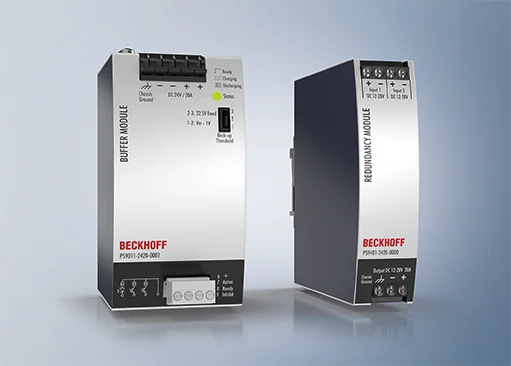 SAVAGE, Minnesota, May 4, 2021 – The new PS9xxx buffer and redundancy modules extend the universal 24/48 V DC power supply series from Beckhoff. These new modules provide more efficient options to avoid machine and plant downtime and, as a result, increase system availability. With the supplementary PS9xxx modules, the PS power supply series and the CU81xx UPS series, Beckhoff offers a complete and coordinated range of solutions for reliable power supply in the 24 and 48 V DC range.