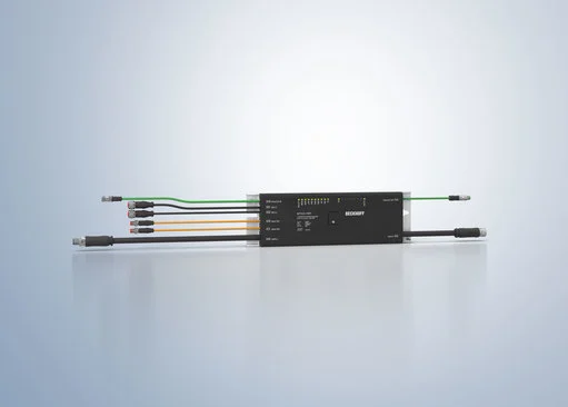 SAVAGE, Minnesota, April 13, 2026 – The Beckhoff EP741x motor-driven roller (MDR) controllers raise the bar for safety, efficiency, and modularity in automated material handling with powered conveyors. The IP54-protected EtherCAT I/O modules are available with or without integrated safety functions to best suit application needs. These compact, conveyor mounted controllers can be widely distributed and support 24 V and 48 V BLDC motors from any manufacturer, including motorized rollers and flat “pancake” motors. This results in exceptional flexibility for equipment manufacturers, simplified wiring, and considerably more data. It also significantly lowers system costs and increases system visibility for predictive maintenance and operational efficiency efforts.