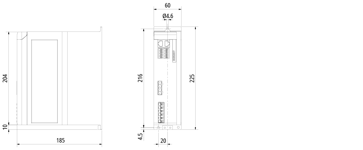 | Depth without connectors | 185 mm |