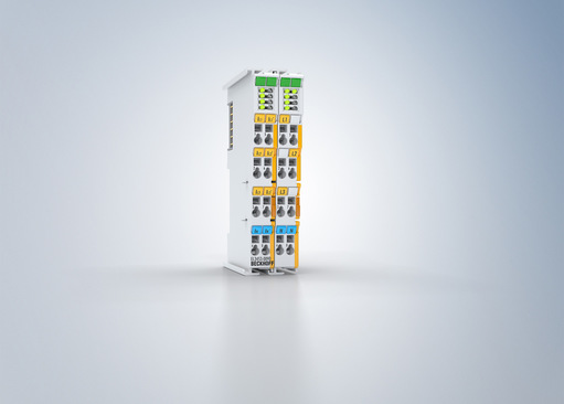 The four current inputs of the EL3453-0090 power measurement terminal are electrically isolated from each other and allow the terminal to be used in all common current transformer configurations such as 2- or 3-transformer configurations with star or delta connection including neutral conductor current measurement. The grid analysis is carried out up to the 63rd harmonic and also summarized in the Power Quality Factor for simplified diagnosis. Like all measured terminal data, the harmonic content can be read via the process data. In addition to the “ExtendedRange” feature, which provides the full technical measuring range (130 % of the specified nominal measuring range), the EL3453-0090 now also offers TwinSAFE SC technology.