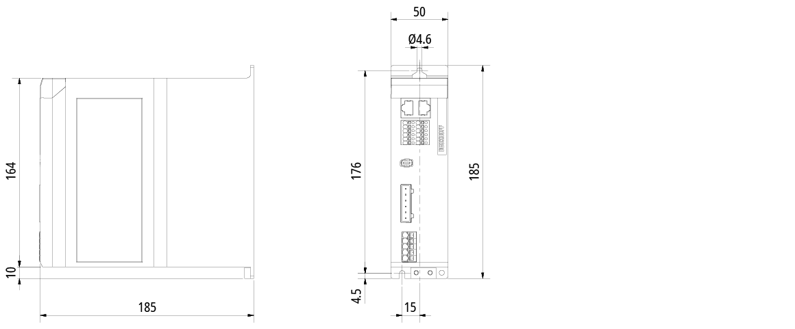 | Depth without connectors | 185 mm |