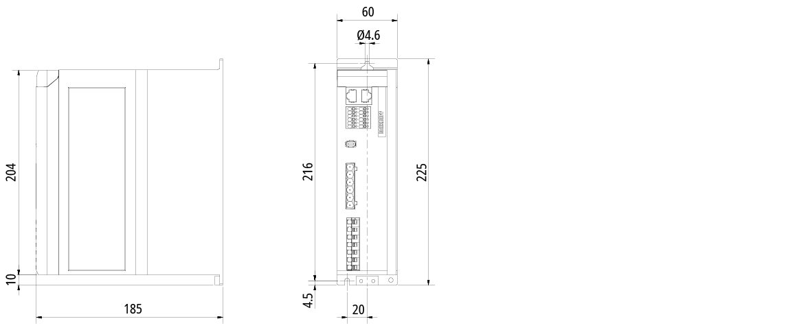 | Depth without connectors | 185 mm |