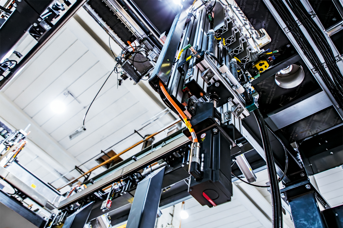 All process steps are automated with PC-based control. “We chose the AL8000 linear motors and AX5000 Servo Drive from Beckhoff because of their high precision and dynamics,” says Erkki Kauranen. The system is controlled via TwinCAT and a C6030 ultra-compact Industrial PC. The customer-specific control panel communicates with the Beckhoff Industrial PC via CP-Link 4. Raute uses AM8000 synchronous servomotors with planetary gearboxes for the rotary movements. Due to the considerable system size of 8 x 10 m, the sensor signals are collected in a decentralized manner using EtherCAT EP box modules with an IP67 protection rating. TwinSAFE components are used for the safety technology.