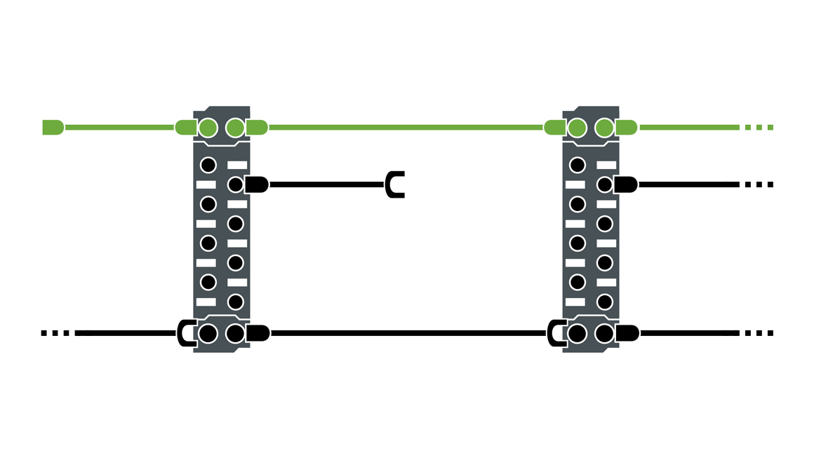The sensors are supplied from the box supply voltage US. The load voltage UP is not used in the input module, but it can be optionally connected for forwarding and is passed on to the next module.